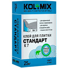 Цементный плиточный клей Kol&Mix ПЛЮС К10 класса С1 Т – плиточный клей для керамической плитки и керамогранита. Изготавливается на основе портландцемента, фракционированного кварцевого песка и модифицирующих полимерных добавок, повышающих пластичность и адгезию к основанию.